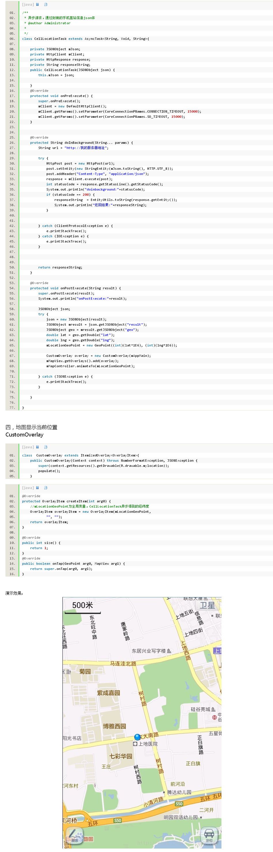 放到百度地圖中,位置有些偏差,這個就需要糾偏了,因為通過基站信息請求到的位置數(shù)據(jù)并非是百度的數(shù)據(jù)。以上就是通過基站信息,進行基站定位的實現(xiàn)原理,就是通過MCC,MNC,LAC,CID等屬性