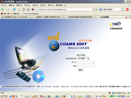 陵園辦公自動化系統(tǒng)2007(Cemetery OA Manage System2007縮寫COAMS2007)是一套涵蓋陵園管理(公墓管理)、公墓統(tǒng)計(銷售統(tǒng)計、公墓統(tǒng)計、任意時間段統(tǒng)計)、殯儀館管理、信息管理、文件處理、人事管理、合同管理(合同套打、合同完整打?。①M(fèi)用管理和查詢(費(fèi)用補(bǔ)交、費(fèi)用繳納記錄、費(fèi)用查詢等)、權(quán)限管理等功能.它不僅完善了陵園的業(yè)務(wù)流程、操作模式管理方法.而且徹底解決了信息收集、處理、發(fā)布的整個過程.促進(jìn)了陵園管理的公開化、電子化、規(guī)范化.對陵園的數(shù)據(jù)進(jìn)行了安全、高效的管理.及時準(zhǔn)確的為陵園行業(yè)的工作決策提供了有效的數(shù)據(jù).真正實(shí)現(xiàn)陵園企業(yè)的電子化