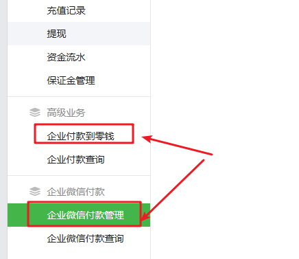 開通后,就可以使用【企業(yè)付款到零錢】與【企業(yè)微信付款管理】2種方式轉賬到個人微信錢包,如下圖所示: